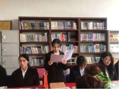 2021年是中国共产党建党100周年,为进一步推进党务建设,充实外国语学院党员队伍,引导学生党员积极践行社会主义核心价值观,从而培养优秀党员,外国语学院学生党支部于2021年3月30日在主教515召开了接收预备党员大会,出席此次会议的有外国语学院学生党支部书记赵连琦同志及外国语学院学生党支部全体在校学生党员。支部大会的主题是讨论接收杨柳同志等九名发展对象接收为预备党员事项。