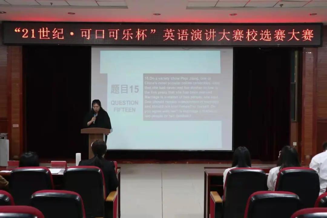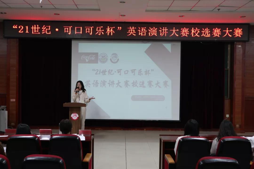 为促进我校英语学科素质教育的发展,激发我校学生的英语学习热情,营造浓郁的校园英语学术文化氛围并展现当代大学生的青春风采,同时为推荐选手参加中国日报社“21世纪•可口可乐杯”英语演讲比赛,外国语学院于4月6日在主教518顺利举办第26届“21世纪·可口可乐杯”全国大学生英语演讲比赛校选赛大赛。