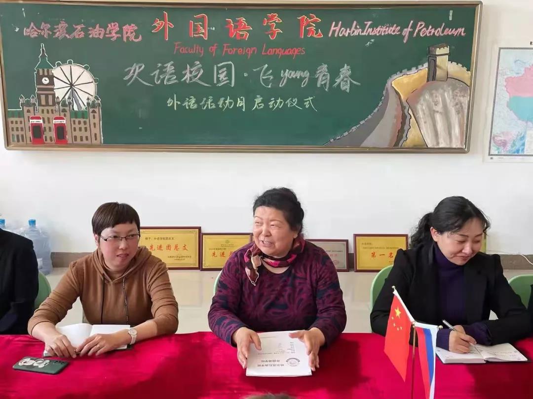 教育部高教司吴岩司长在第四届高等学校外语教育改革与发展论坛中强调:“高等外语教育要主动服务国家发展战略,要大力培养具有全球视野、通晓国际规则、熟练运用外语的高素质国际化人才”。作为衡量外语水平的一块基石,全国大学英语四级考试的重要性就愈发凸显出来。鉴于此,哈尔滨石油学院外国语学院在全校范围内开展为期一个月的外语活动月。4月6日下午,在515会议室隆重举办了以“欢语校园·飞young青春”为主题的外语活动月的启动仪式。外国语学院院长王莉娅,副院长高丽娜,大学外语部主任黄迪以及全院教师出席参加了此次活动。