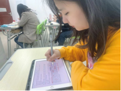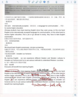 2018级英语二班学生邱实发表了自己对移动终端翻译学习的感想,她总结说:“在翻译时可以选择的设备有纸,笔、ipad,apple pencil 和笔记本电脑。用ipad翻译书最舒服的,配上pencil之后可以集传统的纸笔学习与效率较高的笔记本电脑翻译于一体,达到无纸化学习的目的,可以用手写也可以打字。”