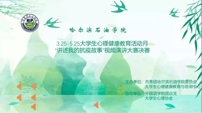 为进一步贯彻落实《教育部关于加强普通高等学校大学生心理健康教育工作的意见》文件精神,进一步普及心理健康知识,提高大学生的心理健康水平,增强大学生的心理保健意识,同时让更多的人来关注大学生的心理健康问题,让更多的人意识到心理健康问题的重要性。同时缓解因疫情带来的各种压力及负面情绪,推动我校大学生心理健康教育工作的开展,结合我校工作实际,经研究,学工处大学生心理健康教育与咨询中心决定开展2021年“3.25-5.25大学生心理健康活动月”系列活动。本次活动哈尔滨石油学院学生工作处、共青团哈尔滨石油学院委员会、大学生心理健康教育与咨询中心共同主办,哈尔滨石油学院外国语学院团总支和哈尔滨石油学院大学生心理协会协办。2021年5月18日晚哈尔滨石油学院大学生心理健康活动月“讲述我的抗疫故事”视频演讲大赛决赛顺利在云端举行,各二级学院心理工作督导员担任大赛评委。