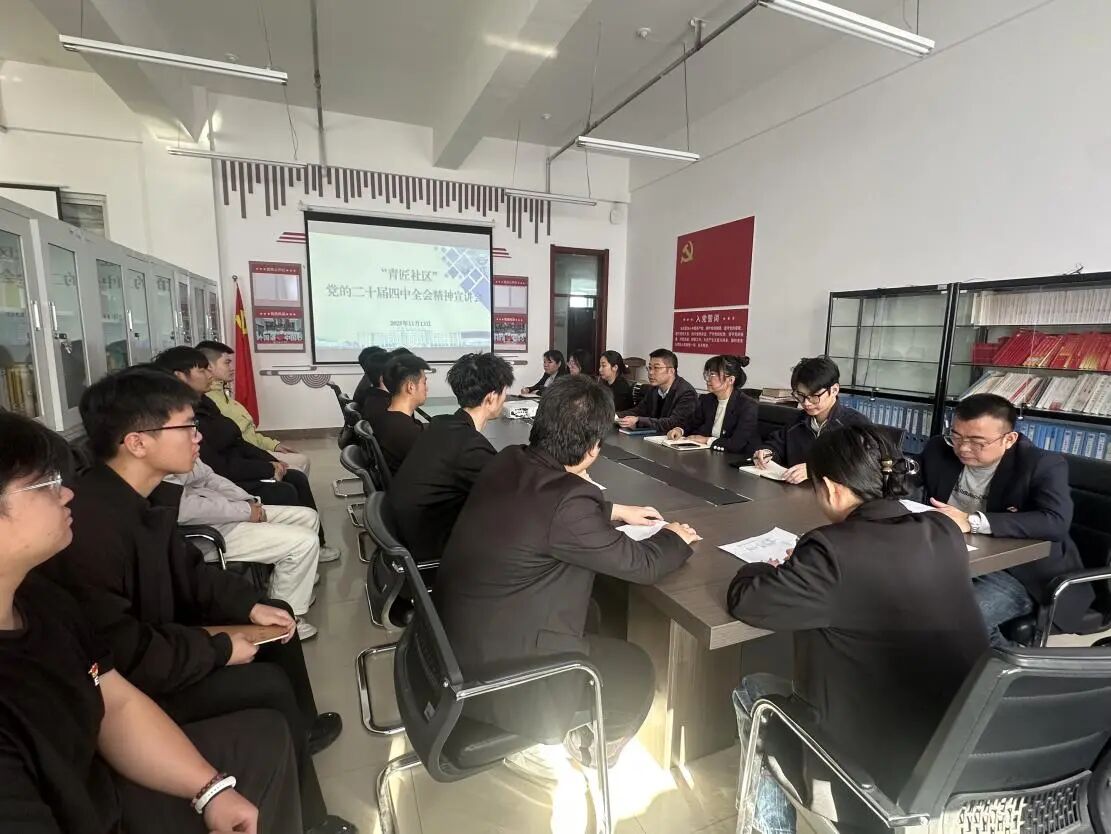 为深入学习宣传贯彻党的二十届四中全会精神,切实把社区全体师生党员的思想和行动统一到全会精神上来。2025年11月13日,“青匠社区”组织召开党的二十届四中全会精神专题宣讲会。社区党总支书记赵婧主持会议,社区党总支书记毛雷主讲,社区全体教师、全体党员同学参加会议。