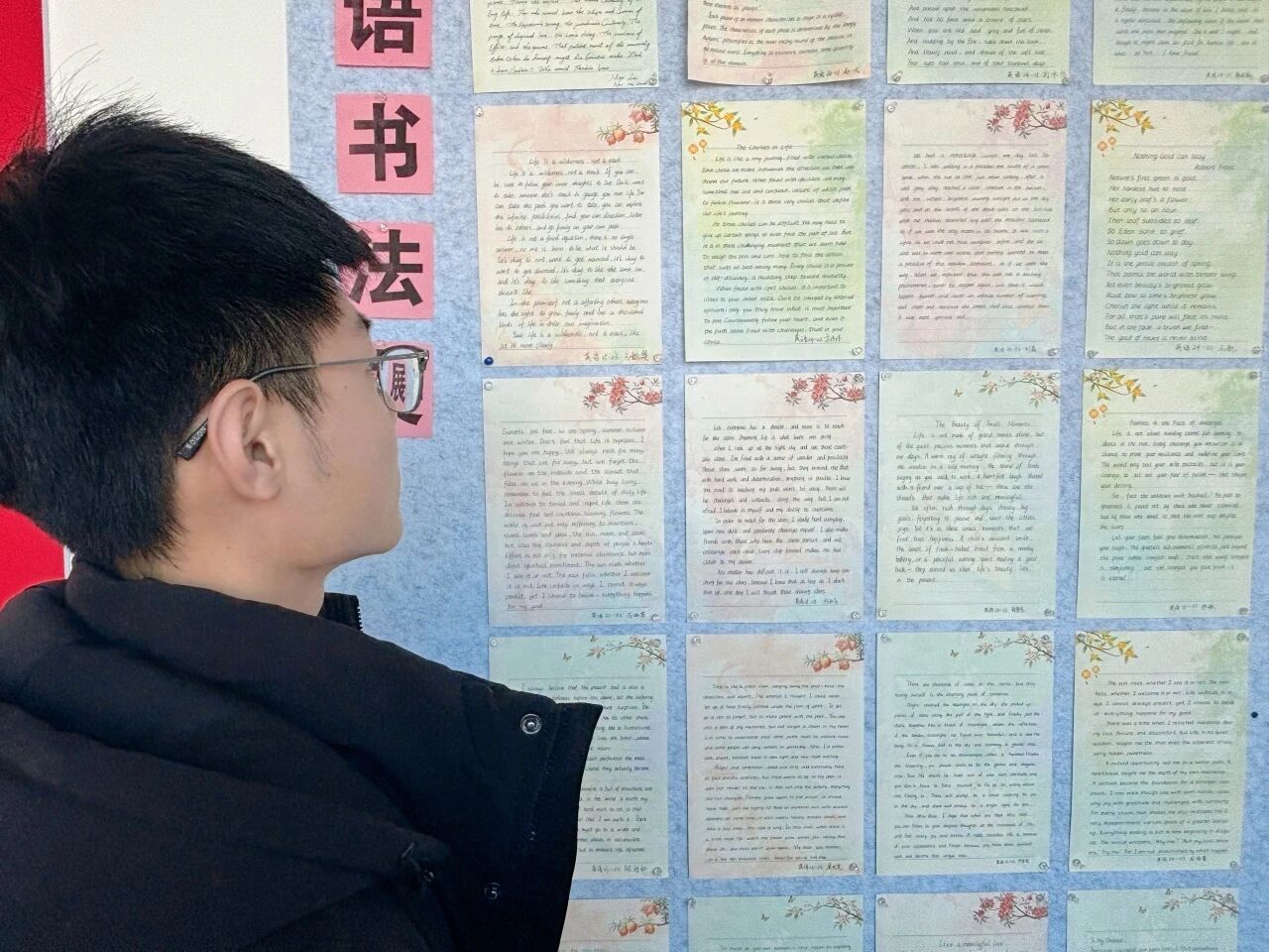 为夯实学生外文书写基础,以文化活动助力学风建设,搭建师生交流学习平台,近日,外国语学院举办中外文书法展,全院师生积极参与。