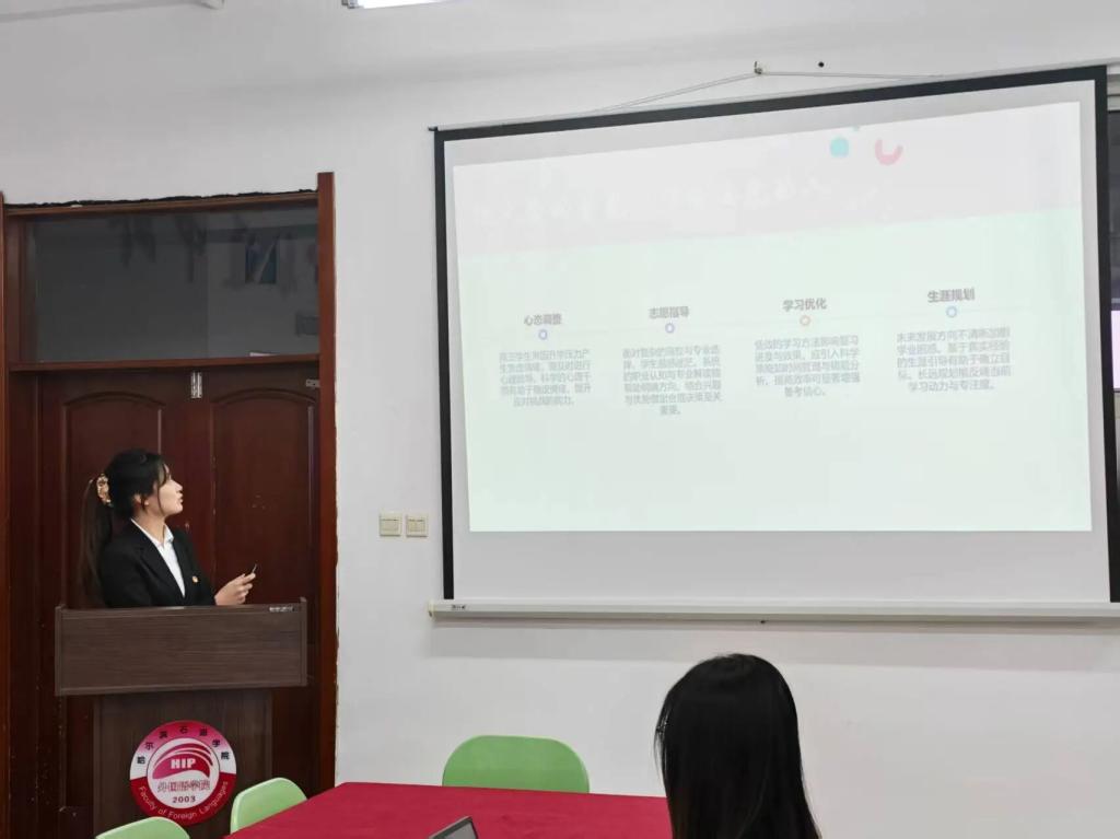 会上,各个代表依次上台,借助PPT、图文展板等形式,生动展示寒假社会实践历程与成果。汇报内容涵盖语言服务、回访母校、志愿服务等多个领域,同学们立足外语专业特色,分享了社区服务、就业实践、社会调研及返母校宣讲等实践活动中的经历与感悟,充分展现了外院学子知行合一、学以致用的良好风貌。