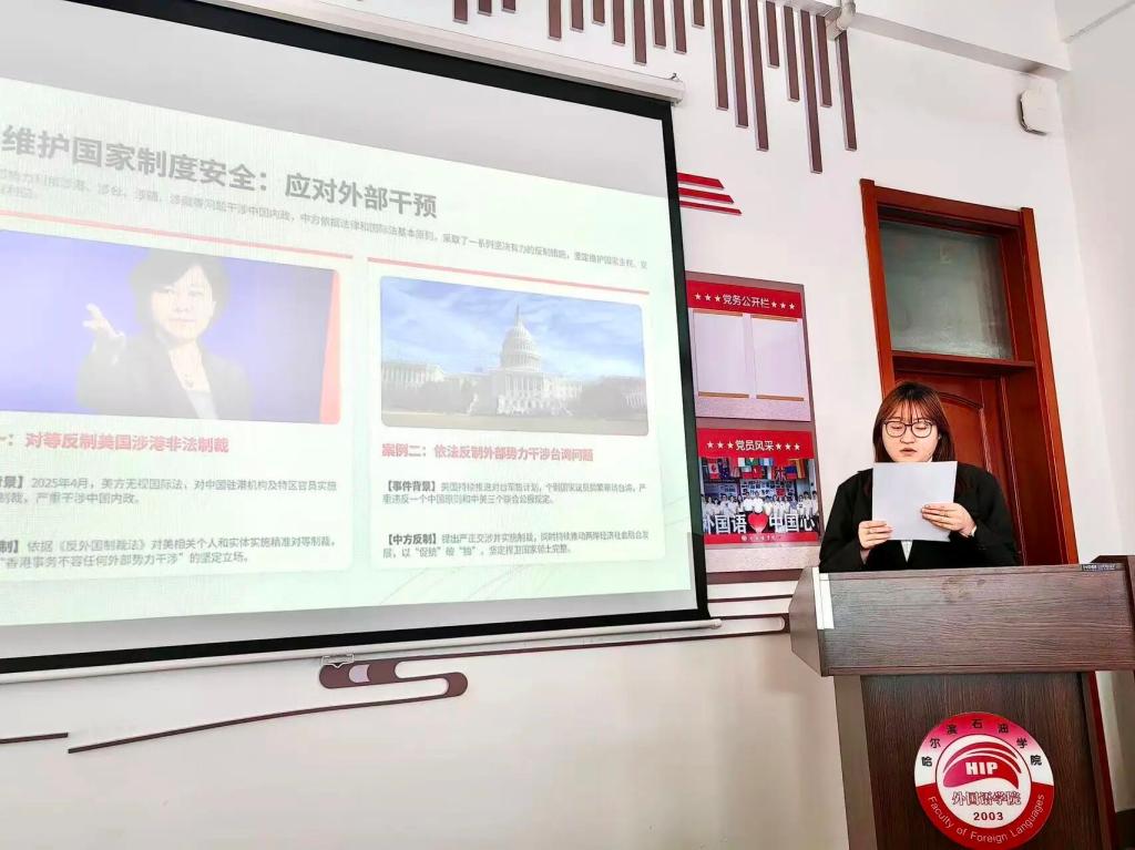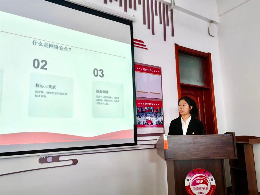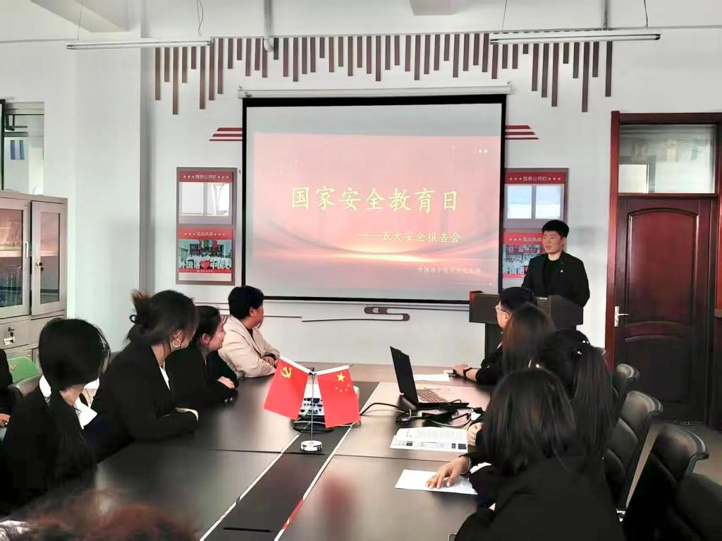 为深入学习贯彻总体国家安全观,切实增强青年学子的国家安全意识与责任担当,引导新时代青年主动扛起维护国家安全的时代使命,2026年4月15日下午13:00,外国语学院学生党支部组织全体学生党员及入党积极分子,开展“国家安全教育——五大安全报告会”,共同学习国家安全相关知识,凝聚青年护国安邦的青春力量。