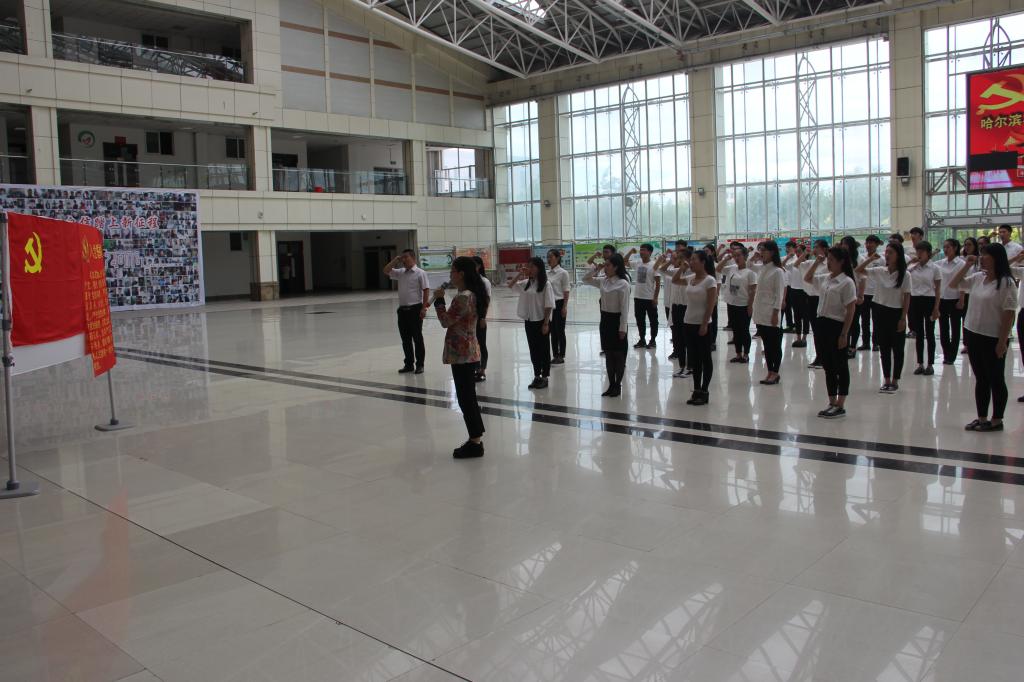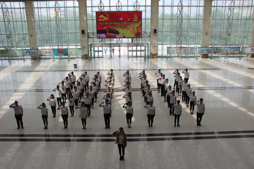 为庆祝中国共产党建党95周年,讴歌党的丰功伟绩,激励广大党员牢记使命,更好的发挥党员先锋模范作用,6月24日,哈尔滨石油学院党委在主教学楼阳光大厅召开入党宣誓大会。