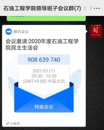 按照《中共哈尔滨石油学院2020年度党员领导干部民主生活会的实施方案》的要求,我院于2021年1月11日上午9:30,以线上会议的形式(腾讯会议:908639740)召开学院领导班子2020年度民主生活会。院长龙安厚、党总支书记刘雁春、党总支副书记张雪、副院长李岳祥、院长助理朱砂参加会议。会议由党总支书记刘雁春主持。