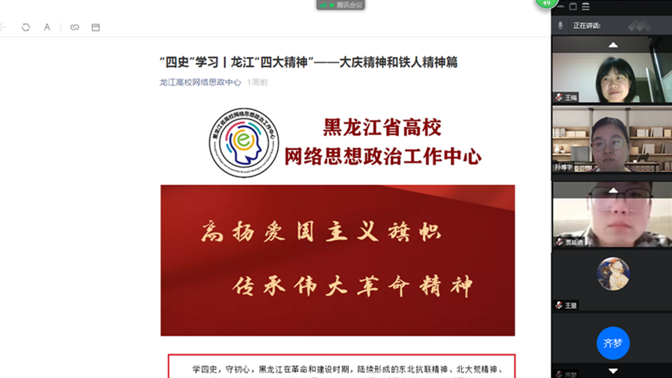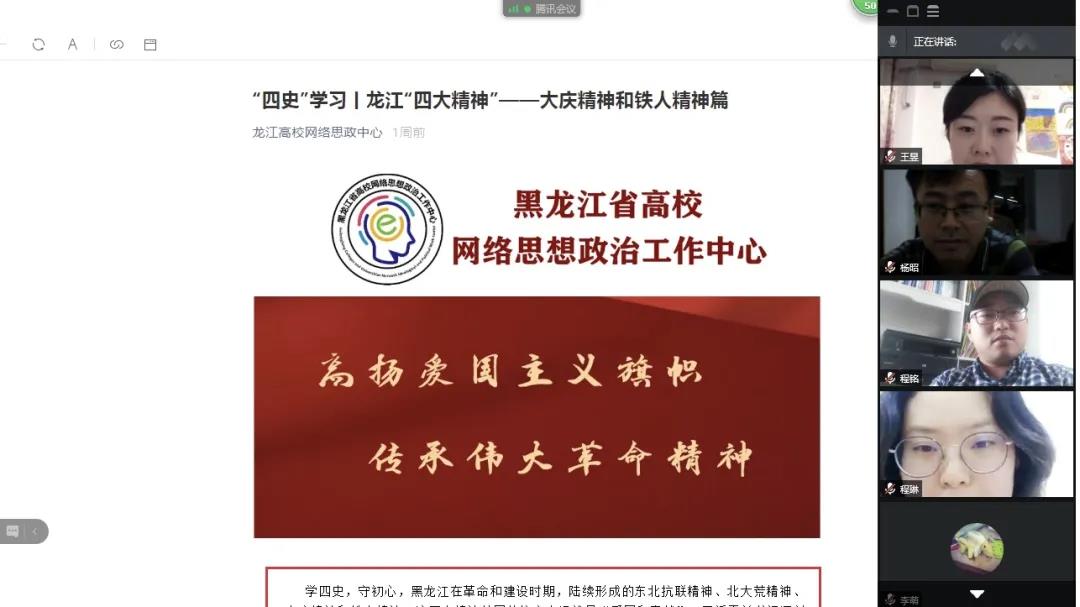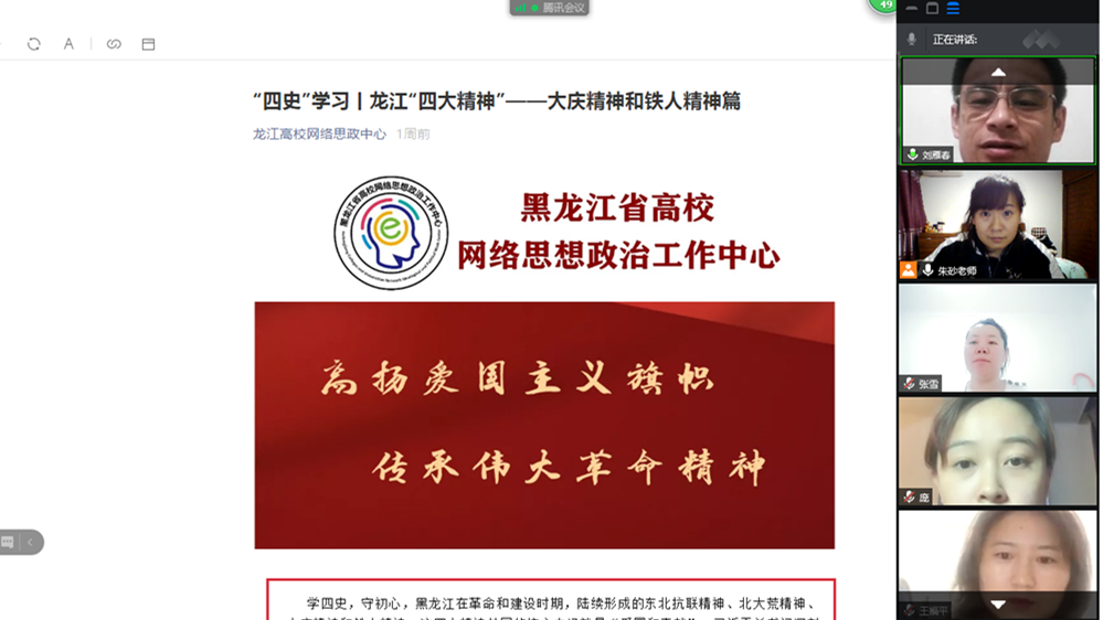 为深入学习贯彻习近平总书记关于学校党建和思政工作的重要指示批示精神,深入学好党史、新中国史、改革开放史、社会主义发展史。石油工程学院积极响应号召,广泛组织全院师生开展“四史”学习,1月29日,由院长龙安厚组织带领全体教职工通过线上平台学习“大庆精神”、“铁人精神”,在面向新时代中国特色社会主义教育事业的今天,一起剖析党性,共同学铁人、做铁人、学做人。