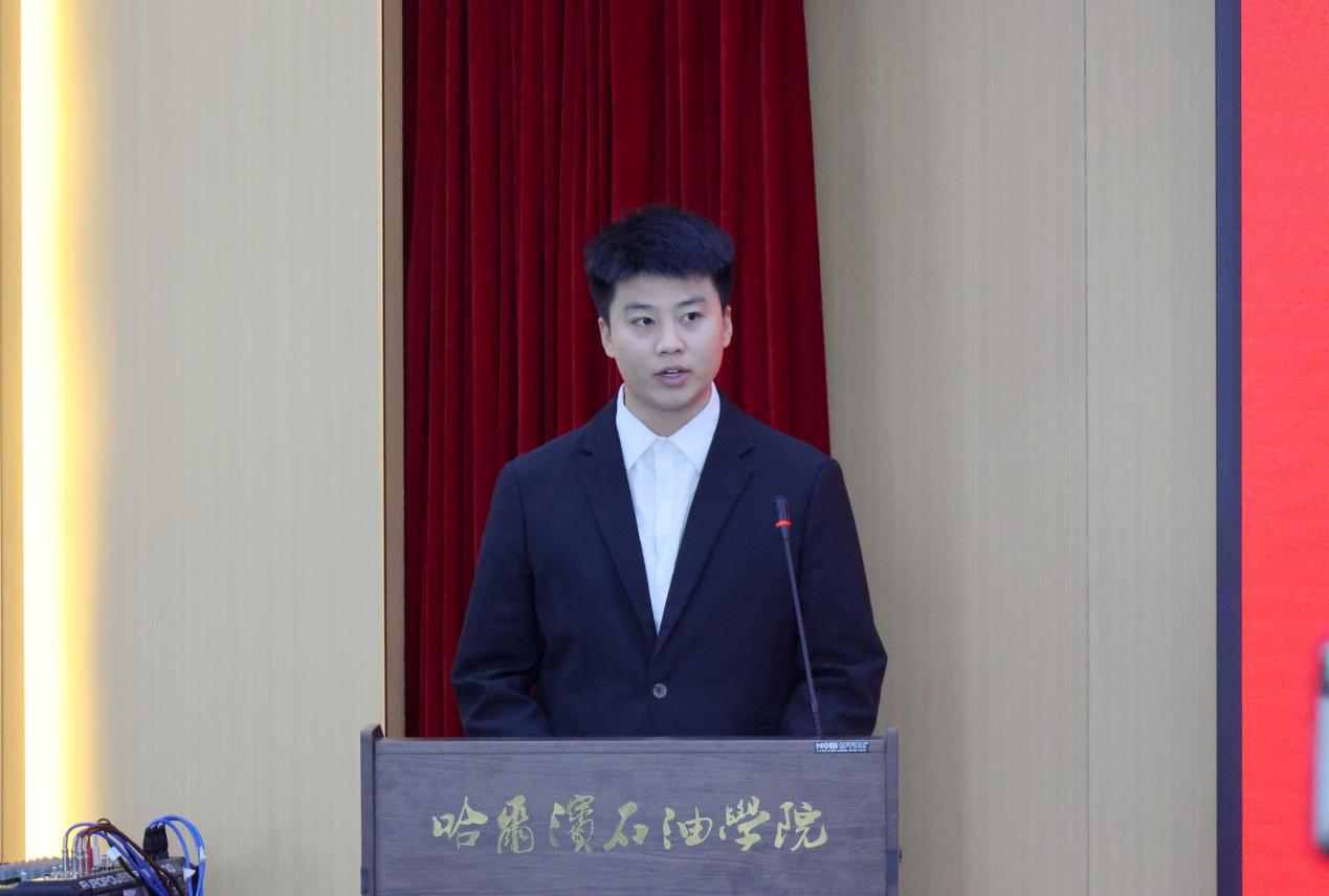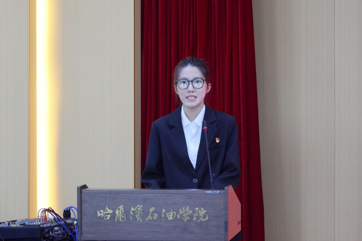 石油与化学工程学院2023级发展对象刘青松、信息工程学院2023级预备党员孙嘉慧代表全体学员表态发言。