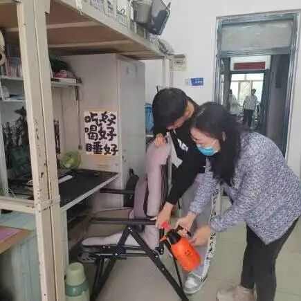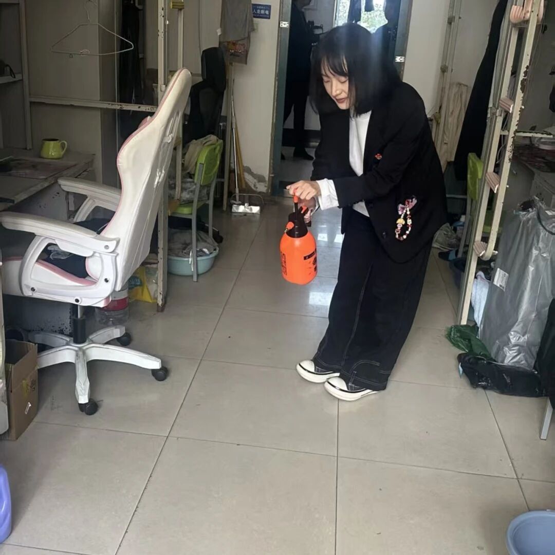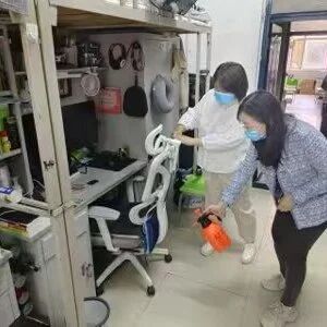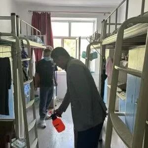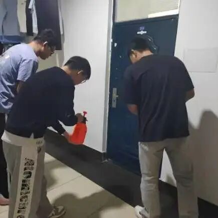 行动前,社区书记统筹部署,支部书记针对消杀标准、重点区域及安全规范开展专项培训,确保任务清晰、操作规范。活动中,全体人员分为多支小队,深入学生寝室及公共走廊,对门把手、桌面、卫生间、走廊扶手等高频接触点进行全面细致消杀。过程中,大家还耐心解答留校同学关于消杀流程、秋季传染病预防的疑问,将健康防护理念与党组织的关怀传递给每一位同学。