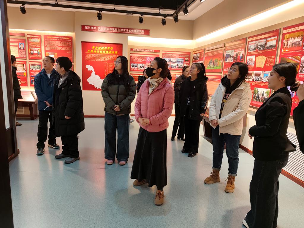 在教育家纪念馆,叩问教育初心。展馆以黄炎培职教思想为主线,系统展现了其"使无业者有业,使有业者乐业"的理念在黑龙江大地的百年传承。党员们驻足在"黄炎培职教思想在黑龙江的传播和发展"展板前,泛黄的历史照片与详实的文献资料,无声诉说着教育先驱们扎根黑土、实业救国的探索足迹。当讲解员述说黄炎培先生与龙江职教事业跨越时空的渊源时,那份"教育为民"的赤诚穿越时空,在教师党员心中激荡起关于"培养什么人、怎样培养人"的深沉叩问。