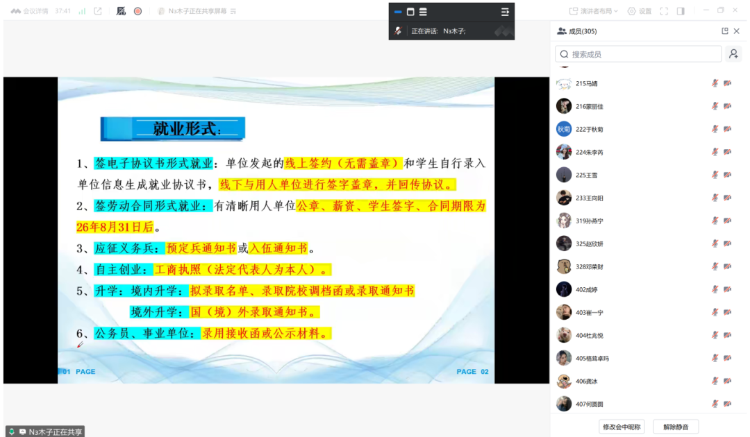 毕业班辅导员李金梅聚焦“线上签约注意事项”进行详细讲解。结合往年签约过程中出现的常见问题,从签约平台操作流程、就业协议填写规范等关键环节逐一拆解说明,并现场演示了平台操作的具体步骤。针对毕业生提出的签约时间节点、档案转接等疑问,辅导员逐一耐心解答,确保每位毕业生都能熟练掌握线上签约的各项要点,规避签约风险。
