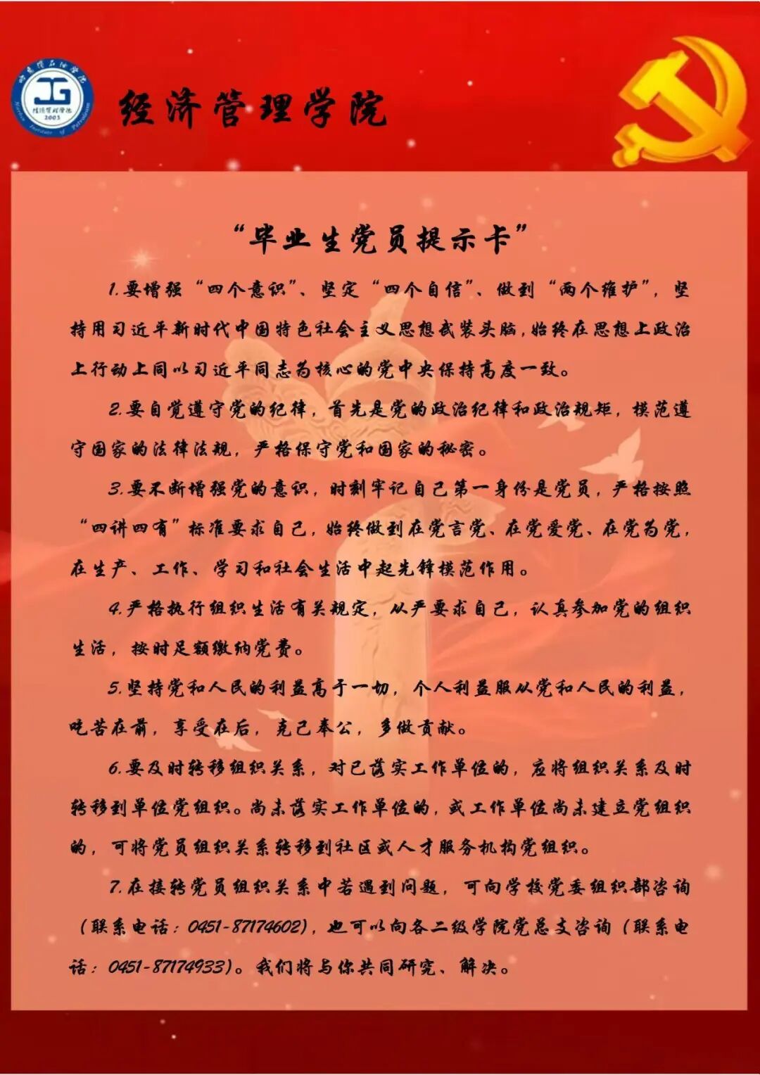 活动中,陈书记首先向毕业生党员们分发了“毕业生党员提示卡”,并从增强政治意识、遵守党纪法规、组织关系转移等方面提出明确指引,强调毕业生党员的党性修养与责任担当,并提供党组织咨询服务以协助解决问题。