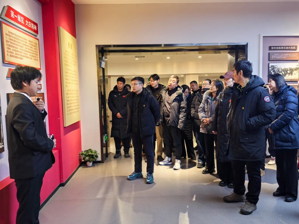 随后,党员一行移步校史馆。馆内丰富的展陈内容,系统梳理了哈尔滨石油学院的办学脉络、学科建设成果、师资队伍风采与人才培养实绩。党员们循着学校发展的时间轴线,深入了解学校扎根石油行业、服务地方发展的办学特色,对学校坚守教育初心、砥砺奋进的发展历程表示由衷赞赏。