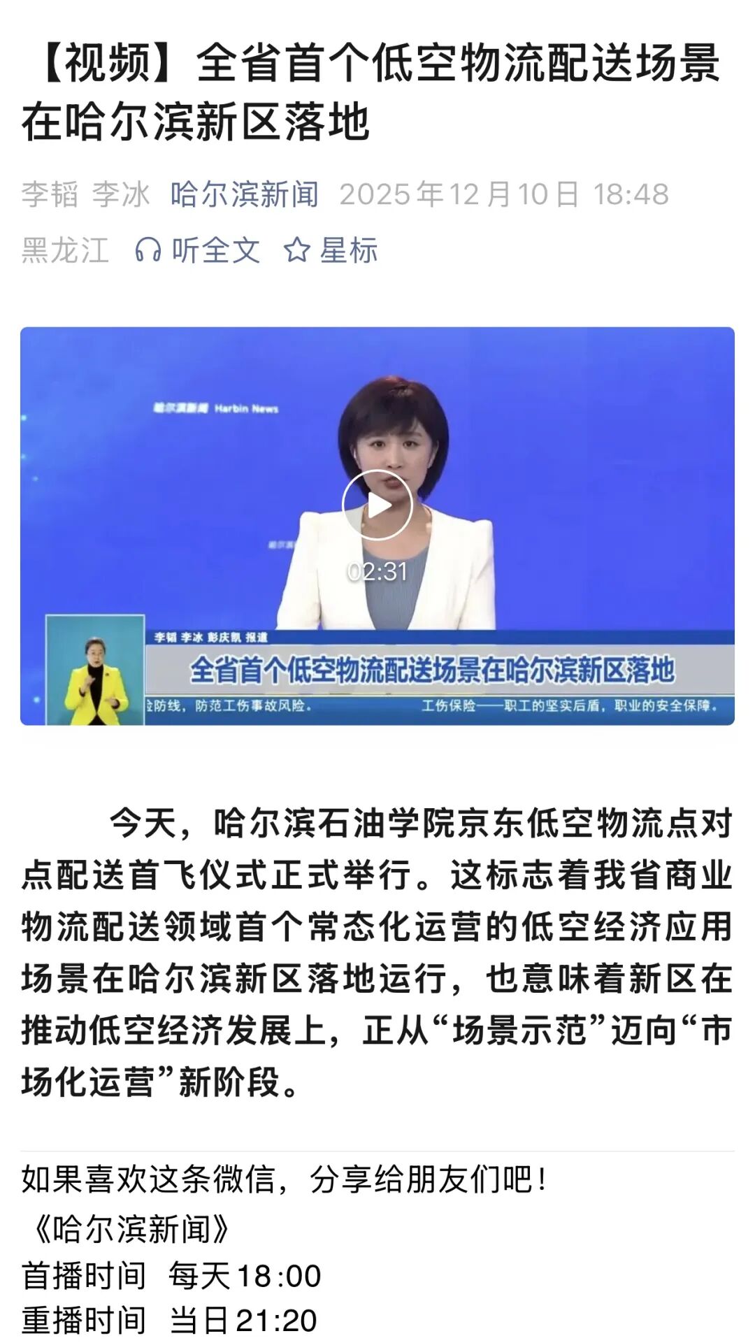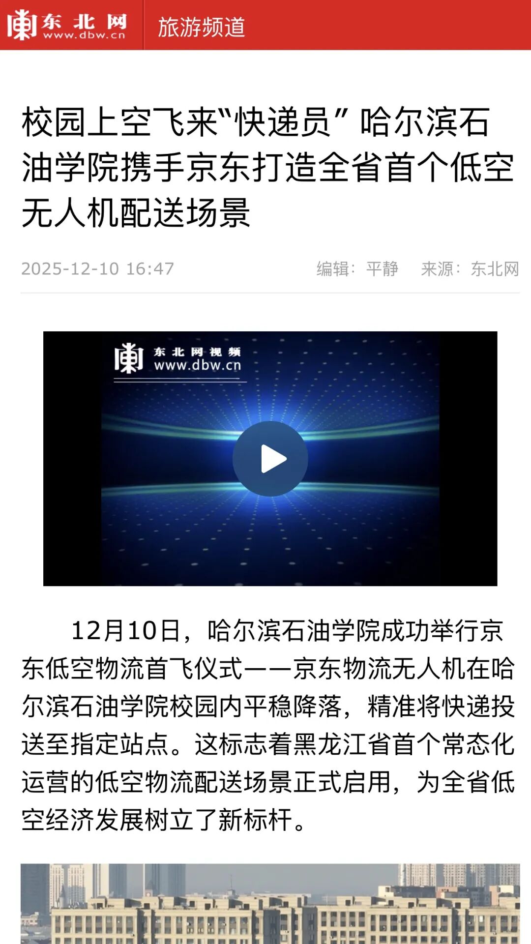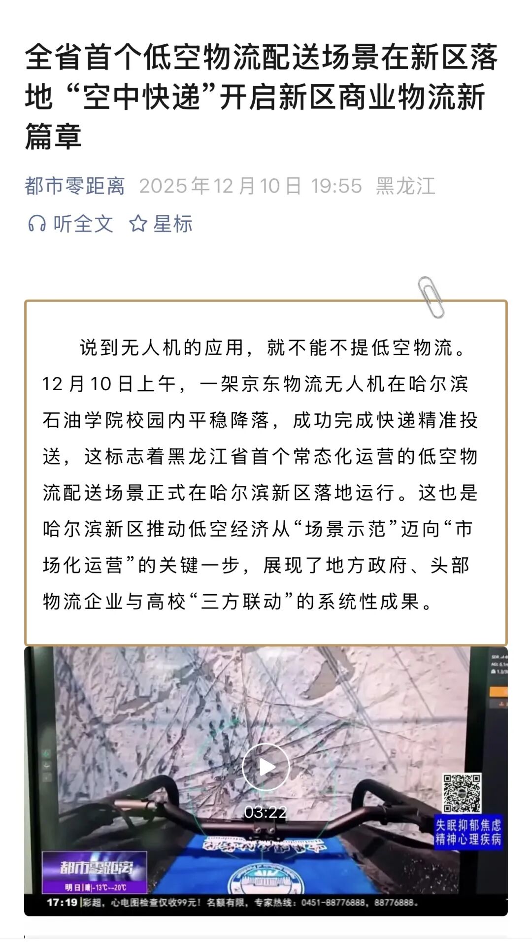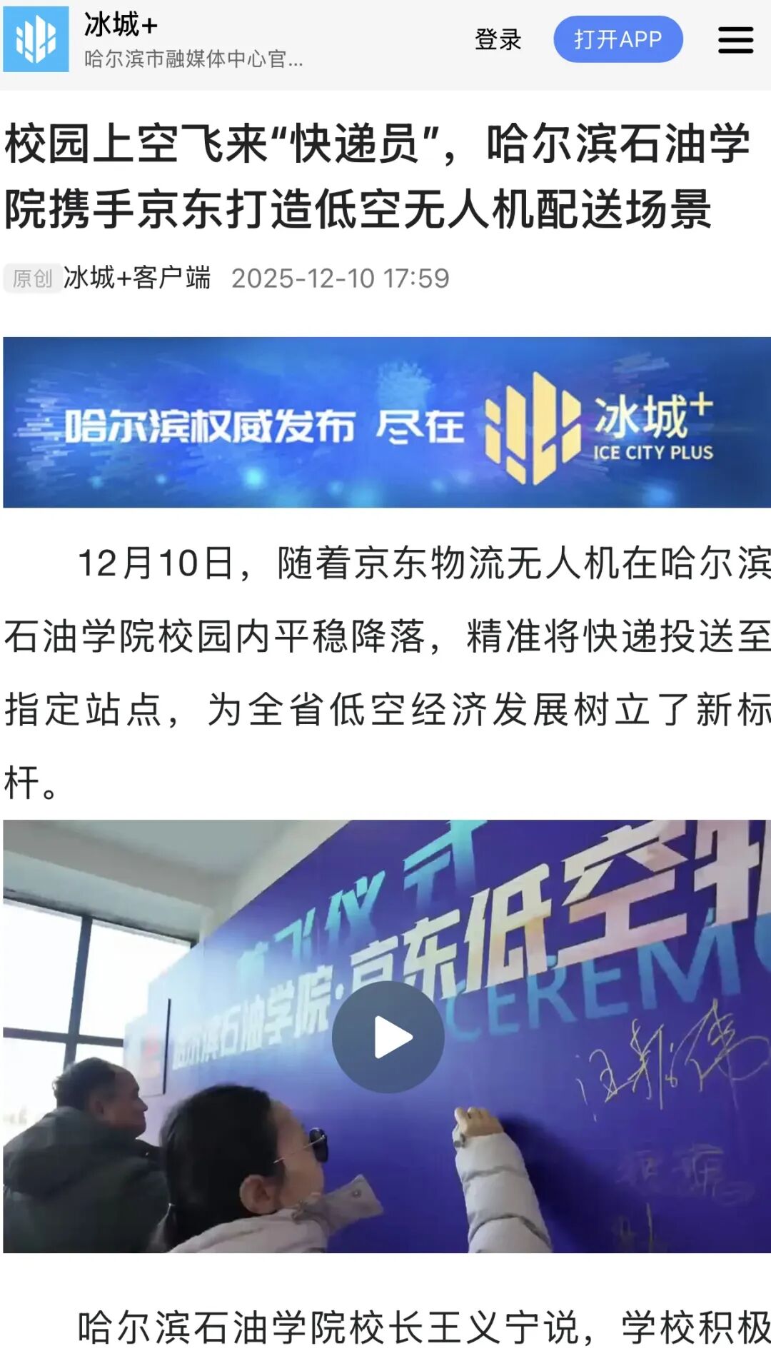 此次事件的广泛媒体关注,是社会各界对低空物流产业发展与产教融合创新的高度期待。未来,哈尔滨石油学院将继续深化校企合作,推动更多低空物流技术成果转化与实践场景落地,为低空经济输送专业人才,也为校园服务升级与行业创新贡献力量。
