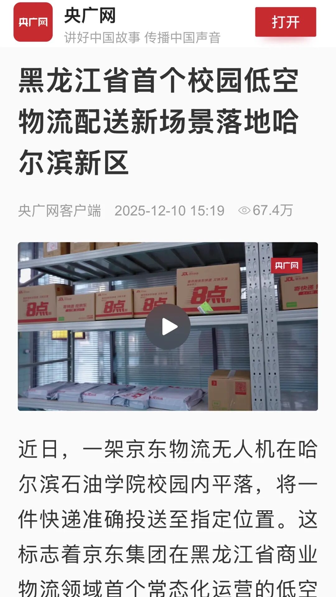 △极光新闻:黑龙江省首个校园低空物流配送落地哈尔滨