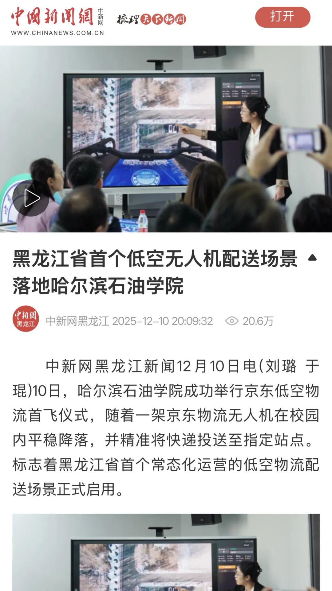 △人民网:全省首个低空无人机配送场景落地哈尔滨石油学院