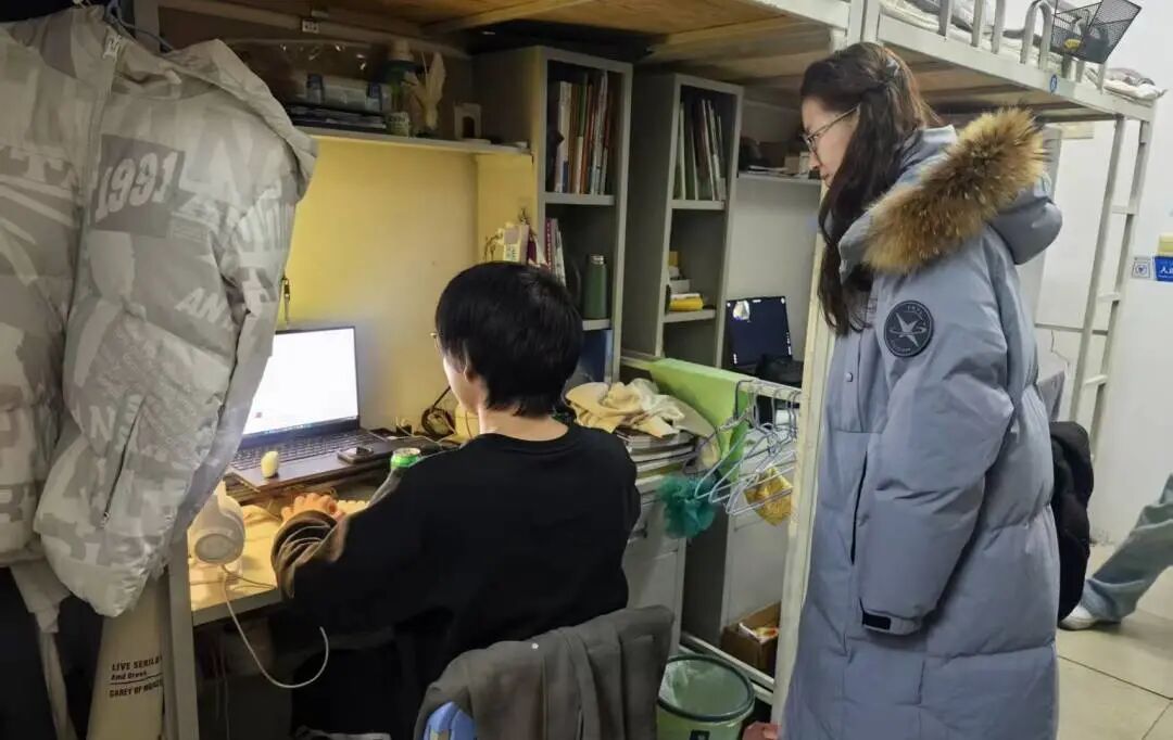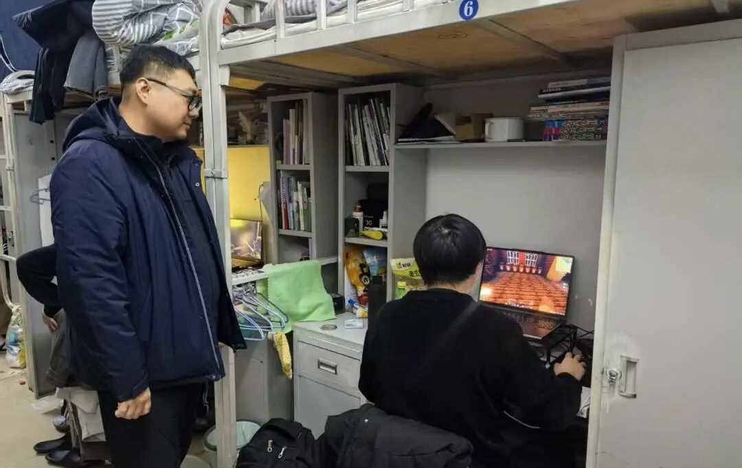 辅导员们逐一对各年级学生寝室进行走访,细致核实每一名学生在寝情况,对未在寝室的学生,通过电话联系掌握其行程与安全状态,确保安全管理无死角、无盲区。辅导员同步开展冬季安全宣传,结合低温天气、夜间出行风险等实际,向学生讲解防寒防滑、寝室用电规范等内容,并询问期末备考进度、生活状况,对学生提出的困惑等进行一一解答,将检查的“严标准”与服务的“暖温度”同步落地。