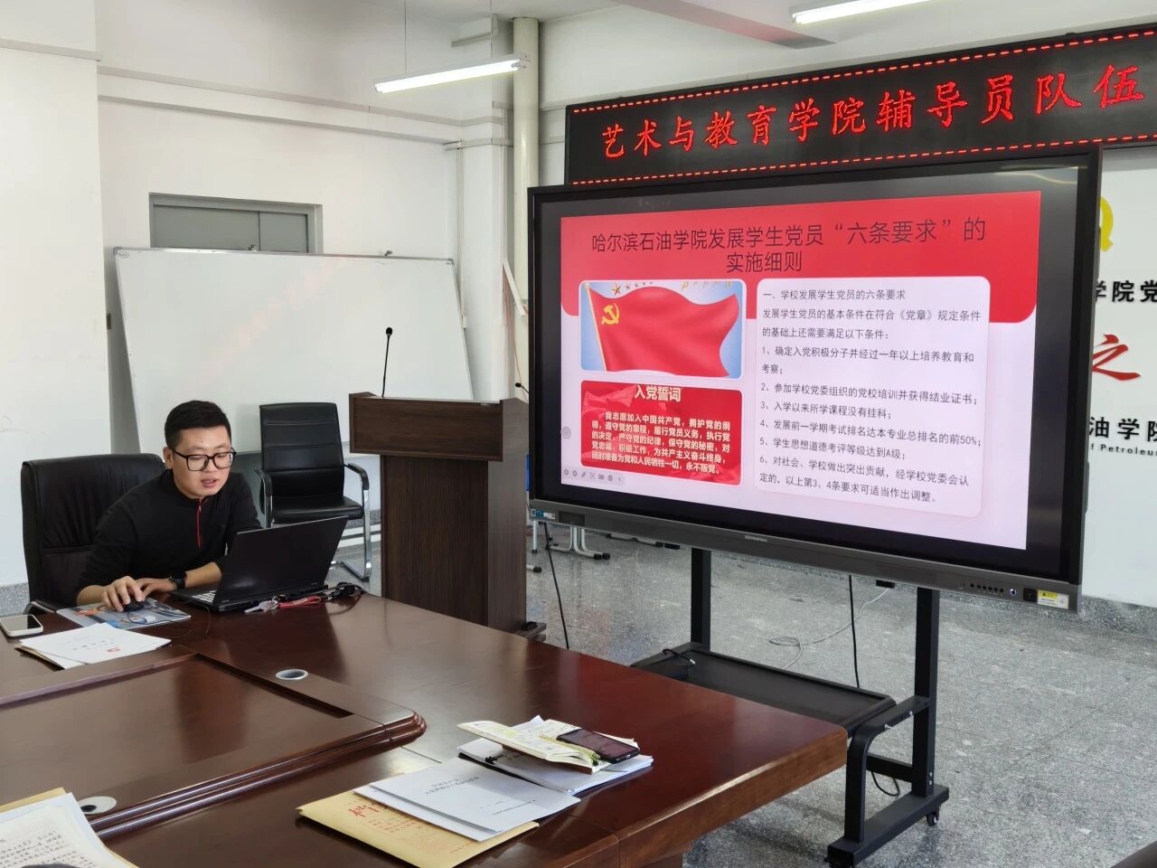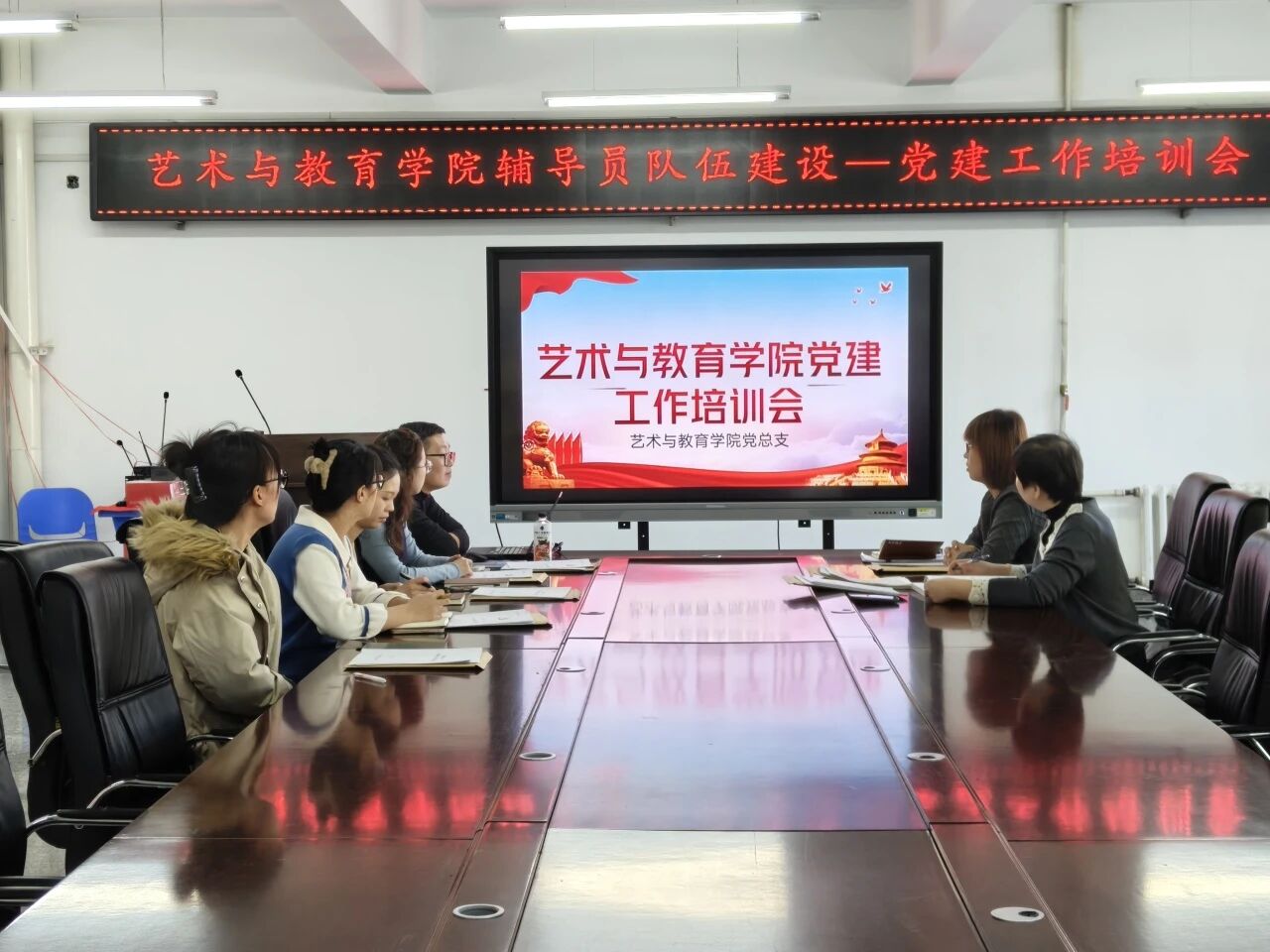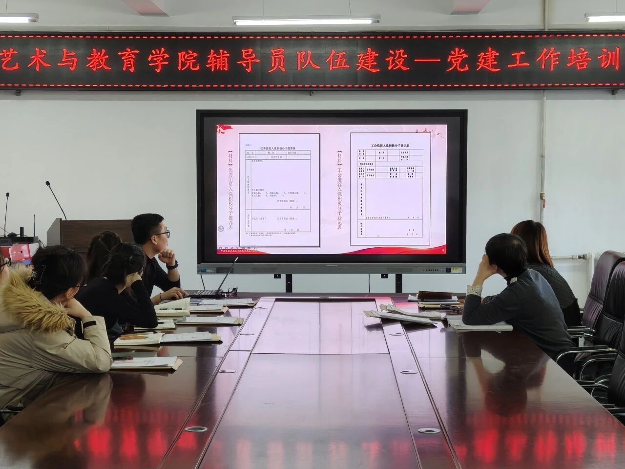 为持续加强辅导员队伍专业化、职业化建设,不断提升基层党建工作规范化水平,2025年12月9日,艺术与教育学院在艺术楼415开展了辅导员队伍建设——党建工作培训会。本次培训聚焦党员发展与教育管理实务,会议由学院学生党支部书记贾延迪主讲,全体辅导员和教师党支部书记共同参加。