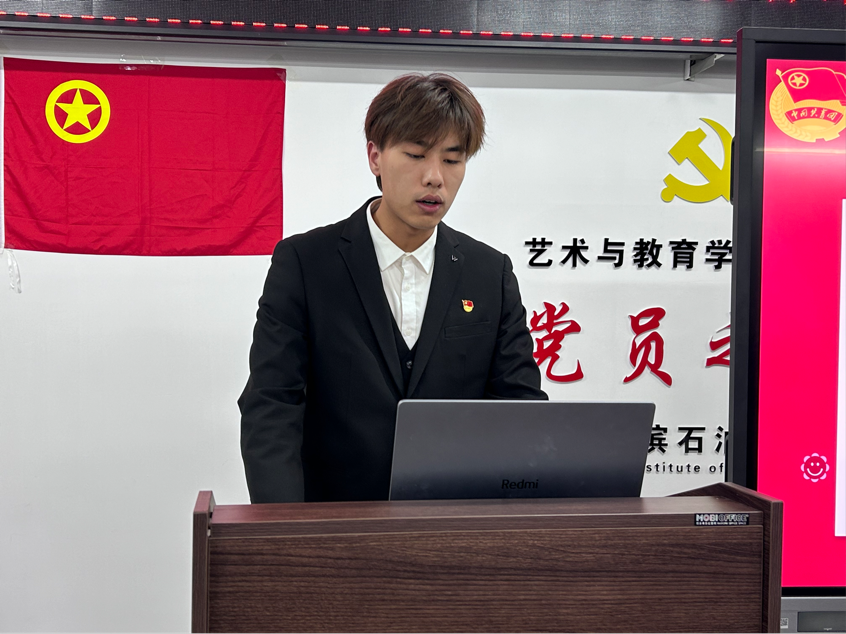 仪式在庄严的中华人民共和国国歌声中拉开帷幕,全体人员肃立致敬,浓厚的仪式感让每一位参与者深切感受到共青团组织的神圣与庄严。随后,艺术与教育学院团总支副书记郭鸿博宣读2025年下半年新发展团员名单,现场响起热烈掌声,既是对新团员过往努力的肯定,更是对他们未来青春征程的期许。