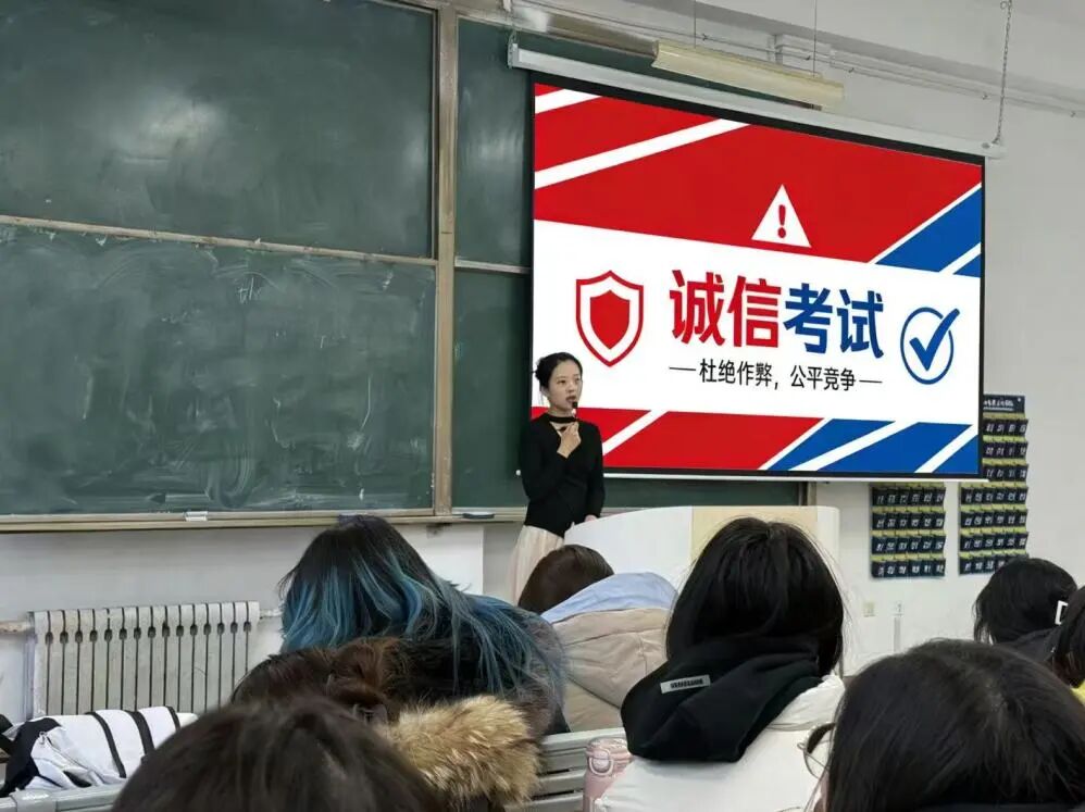 在各年级大会上,辅导员们着重阐述了严肃考纪、诚信应考的重要性,结合近年考试违纪作弊典型案例,深入剖析违规行为对个人的影响,以“身边事”警醒“身边人”,明确指出遵守考试纪律是大学生义不容辞的责任与底线。辅导员要求全体同学从思想上高度重视,端正学习与考试态度,自觉抵制任何违规违纪行为,以真实水平接受检验。同时,辅导员也提醒同学们合理规划复习进度,调整应考心态,并要求党员、学生干部挂牌考试,带动身边同学共同营造清正严明的考试氛围。在考试过程中尊重监考教师,做到文明考风,诚信考试,自觉遵守考场纪律。组织全体同学签署《诚信考试承诺书》,同学们纷纷表示将严格遵守考试纪律,科学规划复习时间,以扎实的知识储备、诚信的应考态度展现同学们“言行一致、表里如一”的优良风貌,用真实成绩为学期学习交上合格答卷。
