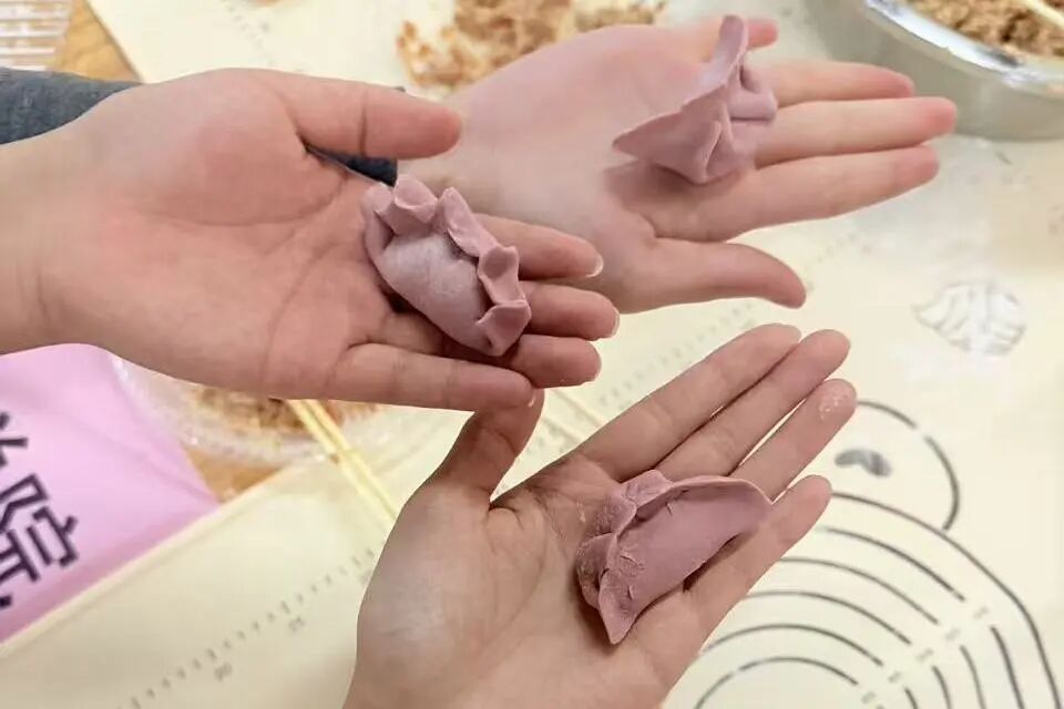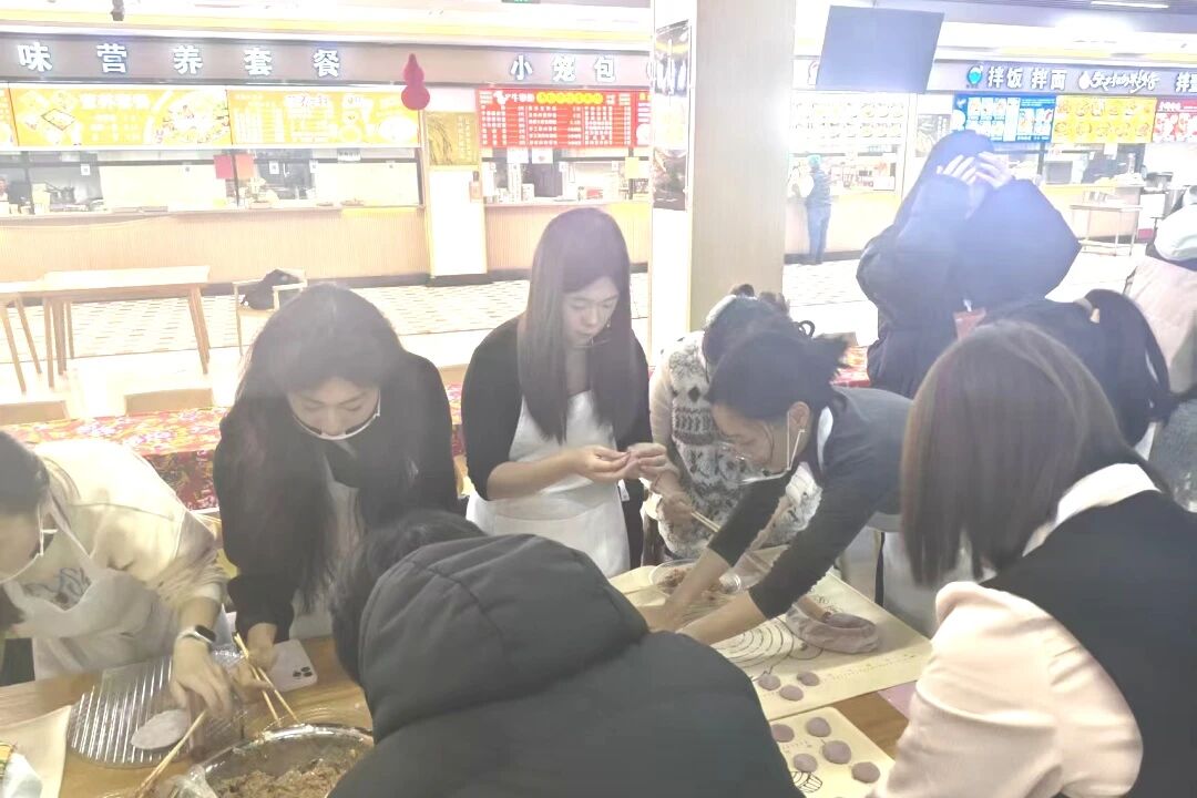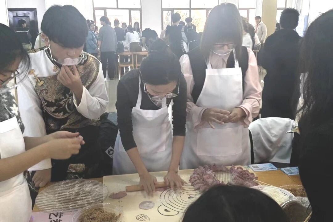 活动现场热闹非凡,处处洋溢着欢声笑语。师生们纷纷挽起袖子,洗手后迅速投入到包饺子的“大工程”中。揉面的同学手法娴熟,面团在他们手中仿佛有了生命,逐渐变得光滑筋道;擀皮的同学全神贯注,一张张圆润的饺子皮在他们手中快速成型;包饺子的同学更是创意十足,包出的饺子形态各异,有的像精致的元宝,有的似灵动的小船,每一个都饱含着大家的心意。大家一边包饺子,一边分享着家乡的冬至习俗和包饺子的独特技巧,还交流着学习生活中的趣事,现场气氛热烈而融洽。当一盘盘热气腾腾的饺子端上桌,师生们围坐在一起,品尝着自己亲手包的饺子,鲜香的味道在舌尖绽放,暖意瞬间传遍全身。每个人都在集体中感受到了传统节日的独特魅力与校园的浓浓温情。