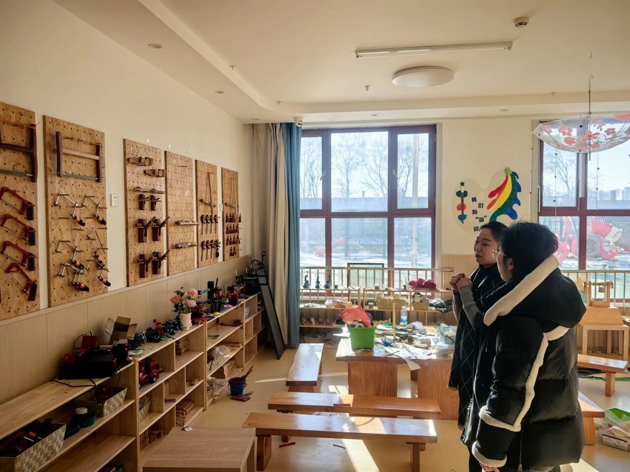 在座谈交流环节,双方围绕学前教育人才培养、实习基地共建、课程资源共享等议题展开深度研讨。高馨月主任介绍了学院学前教育专业的办学特色,提出将第四分园的游戏化课程设计、食育实践模式融入学院核心课程,探索“高校+园所”双向协同的育人路径。胡天池园长分享了办园理念,现场展示了幼儿自主设计的绘本作品、建构游戏成果及节气手作,并表达了与高校联合开发本土化游戏课程、共建“双导师制”实习基地、开展幼儿发展研究项目的合作意愿,期待通过校地合作为幼儿教育注入专业动能。
