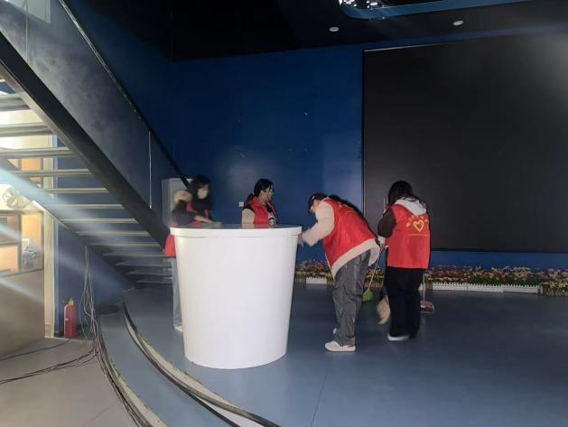 活动开始前,负责人对志愿者们进行了任务分配和安全提示,明确分工为地面清扫、座椅擦拭、设备除尘及垃圾整理。志愿者们迅速投入工作,手持扫帚、抹布、垃圾袋等工具,不放过任何一个卫生死角。大家互相配合、干劲十足,经过近两个小时的努力,演播厅的地面焕然一新,座椅整洁有序,设备光亮如新。