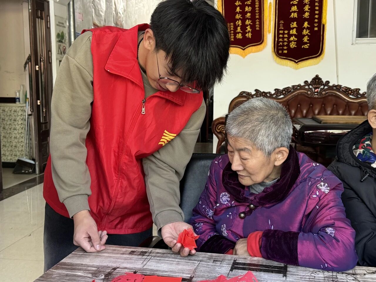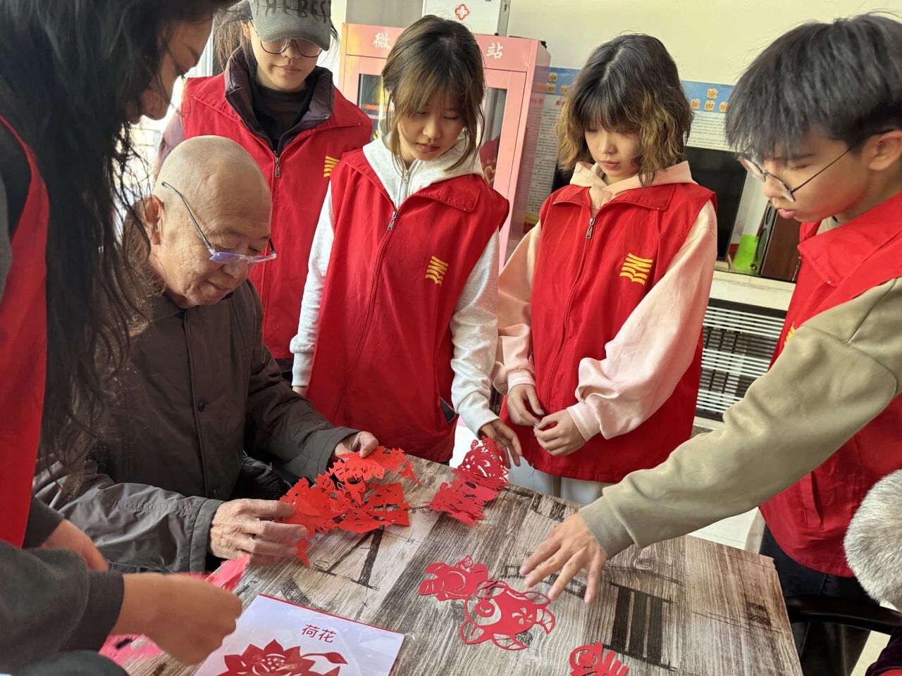 抵达养老院后,志愿者们迅速投入服务中。在养老院工作人员的引导下,与老人们亲切交谈。志愿者们耐心倾听老人讲述过往经历,用温暖的话语驱散老人的孤单。“爷爷奶奶,您看这剪纸好看不有小老虎莲花,希望您天天开心!” 老人脸上露出了欣慰的笑容,志愿者将传统文化的魅力与美好祝福传递给每一位老人,丰富老人的生活。