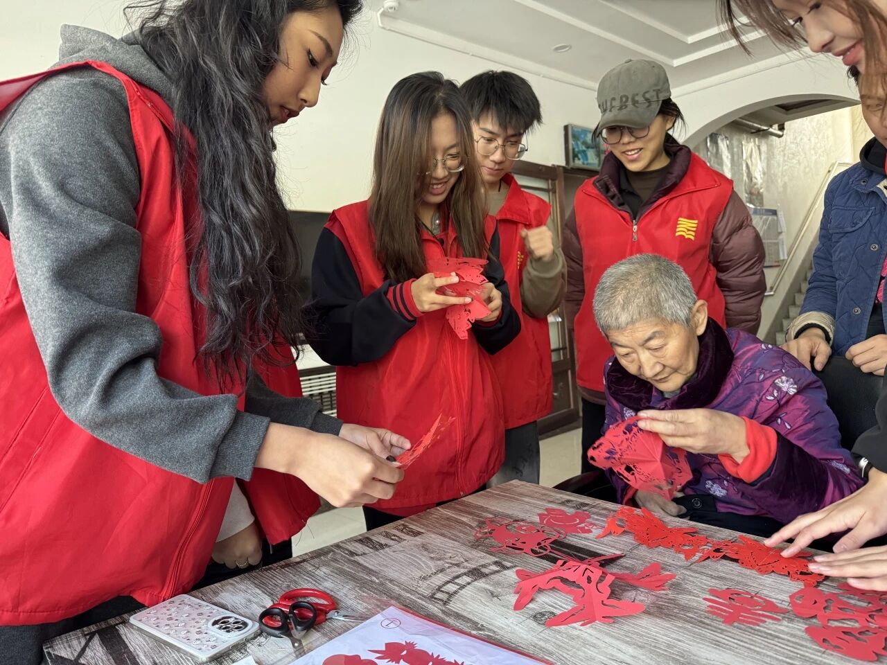 为深入学习贯彻习近平新时代中国特色社会主义思想,不断增强老年人的获得感、幸福感、安全感,艺术与教育学院青年志愿者协会“艺”启同行志愿服务队于2025年10月21日走进福邸养老院,开展“指尖剪纸传温情,围坐闲谈暖夕阳”金晖行动主题志愿服务活动,用实际行动为老人们送去关心。
