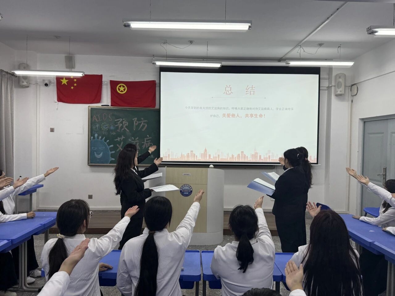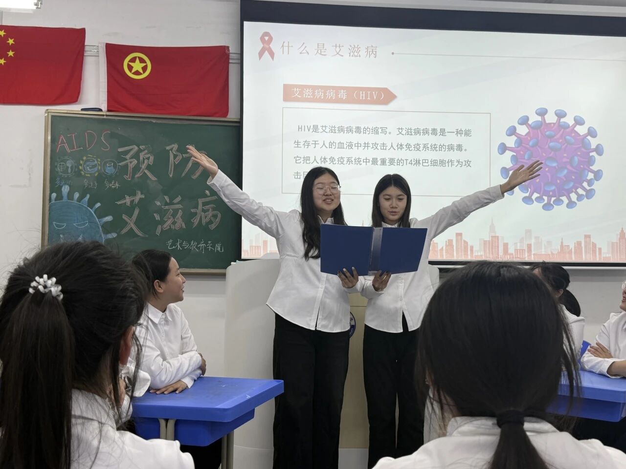 活动中,各团支部结合艺术专业特色设计丰富内容,让防艾宣传既具知识性又富趣味性。部分班级组织观看防艾科普视频,结合真实案例深入剖析艾滋病传播途径、高危行为危害及预防要点,细致纠正“日常接触会传染”“外表可判断感染情况”等常见认知误区;有的班级开展防艾知识擂台赛,将病毒预防措施、检测流程等核心内容融入抢答竞猜,以互动形式推动知识入脑入心;还有班级通过情景模拟、主题分享等形式,引导学生沉浸式学习校园社交及外出实践中的防护技巧,明确“自身是健康第一责任人”的理念。