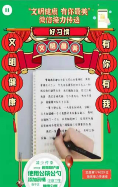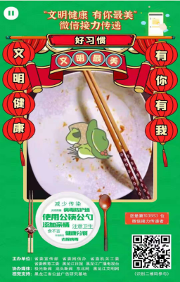 为深入贯彻习近平总书记关于坚决制止餐饮浪费行为、切实培养节约习惯的重要指示精神,加强群众性精神文明建设的创新载体,推动移风易俗、弘扬时代新精神文明建设的创新载体,推动移风易俗、弘扬时代新风的具体实践。在2021年春节来临之际,为落实哈尔滨石油学院党委宣传统战部工作部署,信息工程学院党总支组织全体师生积极主动参与到“文明健康 有你最美”微信接力传递活动中来,用自己的实际行动去传递每一份祝福。