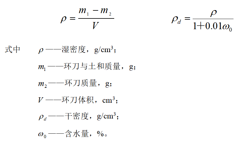 按下列公式计算湿密度和干密度